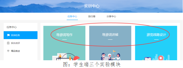 进入“学生端-实训中心”模块,点击“导游词讲解”,选择相应的实验任务,接受任务后进入实训界面。